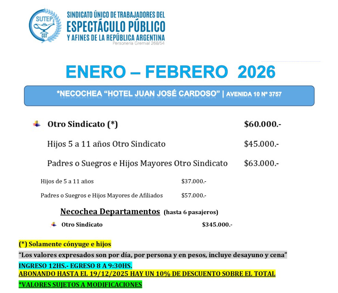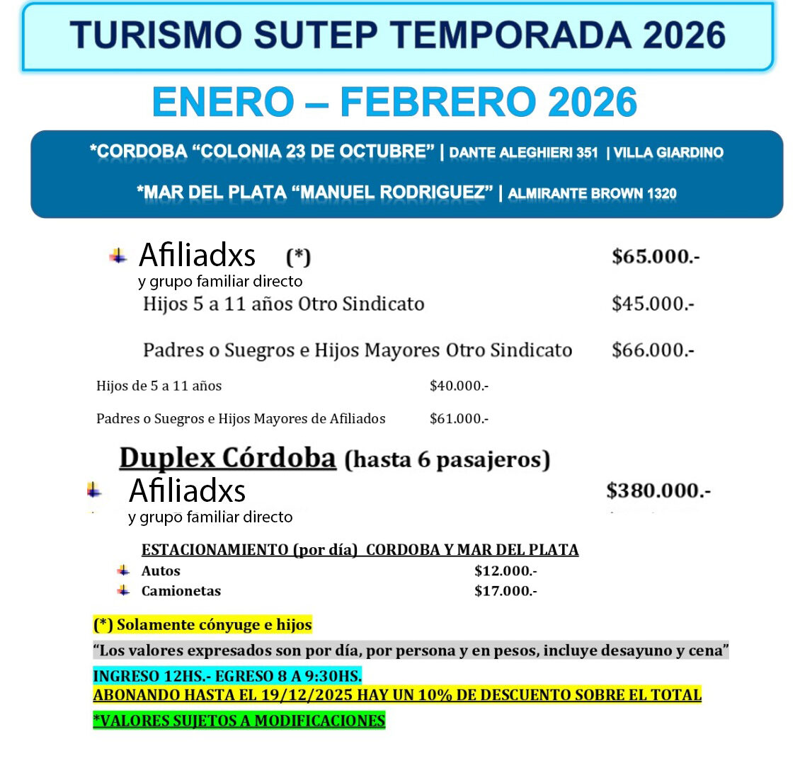 Convenio con SUTEP Mar del Plata – V. Giradino – Necochea