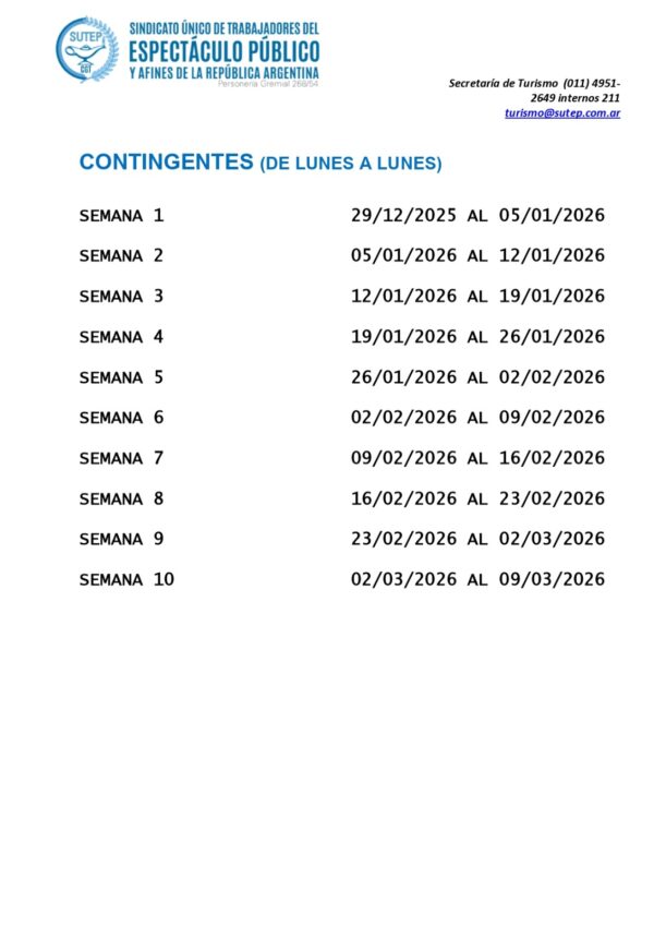 VERANO 2026 – ver costos y contingentes en imágenes